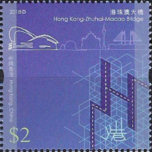 港珠澳大桥东连香港特别行政区,西接广东省(珠海市)和澳门特别行政区。港珠澳大桥项目主要分为两部分:在内地水域进行的主桥工程,以及由粤港澳三地政府各自负责的连接路及口岸工程。随着港珠澳大桥通车,粤港澳大湾区的交通网络将更趋完善。香港邮政特别发行一套四枚邮票及一张邮票小型张,以志其事。