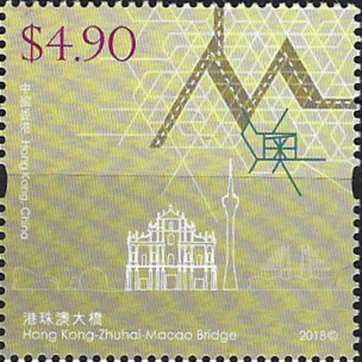 港珠澳大桥东连香港特别行政区,西接广东省(珠海市)和澳门特别行政区。港珠澳大桥项目主要分为两部分:在内地水域进行的主桥工程,以及由粤港澳三地政府各自负责的连接路及口岸工程。随着港珠澳大桥通车,粤港澳大湾区的交通网络将更趋完善。香港邮政特别发行一套四枚邮票及一张邮票小型张,以志其事。