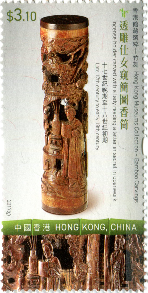 香港邮政于二○○九年首度发行以「香港馆藏选粹」为题的特别邮票,展示本地博物馆的各种艺术文化藏品。今年,香港邮政以「竹刻」为主题,发行「香港馆藏选粹」特别邮票系列第五辑。