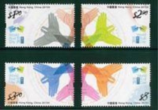 香港邮政以「世界邮政日」为题,发行一套四枚特别邮票。邮票设计以双手交迭形成的飞翔鸽子为主体,鸽子状似向外飞去,代表把信件寄出到不同地方,寓意邮政服务覆盖世界各地。四枚邮票的构图亦可重新组合:把分散于邮票四个角落的地球部分放在中央拼合成地球图案时,鸽子便会变为由外面飞返,代表带来回信。邮票设计蕴含「送出」和「接收」信件之意。鸽子身上更展示香港邮政其中六款邮戳,增添本地特色。