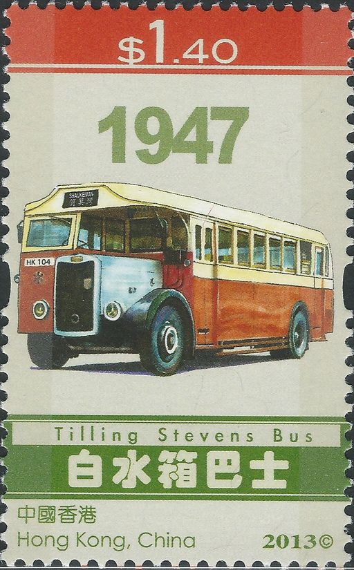 战后初期,香港人口不断增加。一九四七年,俗称「白水箱」的TillingStevens巴士开始投入服务,以应付庞大的载客需求。邮票上的白水箱巴士为香港现存最古老的巴士,在一九四九年由中华汽车有限公司首次登记,一九六七年退役。