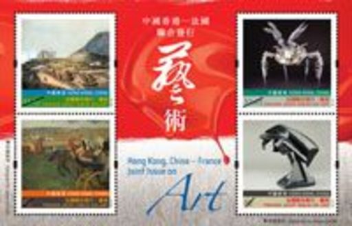 艺术是不同美学形式的创作和表达,旨在引发思考和情感.众多艺术杰作成为国家级的文化资产.搜集,保存和诠释重要的艺术作品,有助提高本地以至世界各地民众的艺术鉴赏能力,以及鼓励创意.香港邮政和法国邮政以艺术为题联合发行一套四枚邮票,展示中国香港和法国的旧日画作和当代雕塑,反映两地丰富的艺术文化.两幅画作均绘于十九世纪,用色相近,其写实手法和绘画材料亦源自西方;两件雕塑则同属二十世纪作品,灵感均源自动物.这套邮票是香港邮政第十二度与海外邮政机关合作发行的邮票.