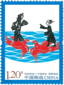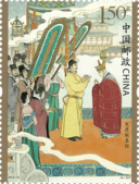 「中国成语故事」邮票一套五枚,分别为「相濡以沫」、「水滴石穿」、「千锤百练」、「节用厚生」和「庖丁解牛」。