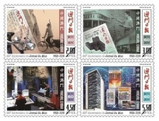 是次发行包括一套四枚邮票及一枚小型张,就让邮票细诉澳门日报经营六十寒暑的点滴变迁。