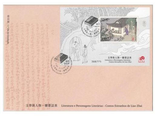 澳门邮政将于二零一六年十二月一日以『文学与人物–聊斋志异』为题发行新邮品。是次发行的八枚邮票和一枚小型张所选取的短篇小说包括《画壁》、《青凤》、《陆判》、《聂小倩》、《侠女》、《莲香》、《张诚》、《姐妹易嫁》及《画皮》。