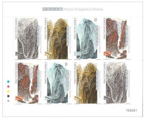 是次发行包括一套四枚邮票及一枚小型张,邮票上急流飞瀑、气势撼人的中国山水画取材自澳门画家孙蒋涛创作的过百幅巨幅佳构当中数幅具代表性的画作,包括:“山中一夜雨,石上飞流泉”、“丹霞秋色”、“苍翠神农架”、“峡江金秋”和“挂壁飞流图”,而首日封则以“桂林山水”为图案。