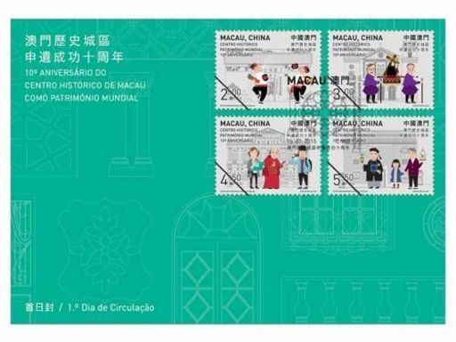 澳门历史城区于2005年7月15日列入联合国教科文组织的《世界遗产名录》,成为中国第31处世界遗产。为庆祝申遗成功十周年,澳门邮政将于二零一五年七月十五日以『澳门历史城区申遗成功十周年』为题发行新邮品。