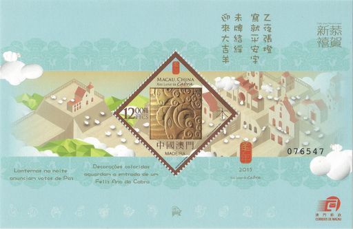 邮票的设计槪念以「羊」的各种形态与“金、木、水、火、土”的特质结合,岁次乙未,羊的五行属性为木,所以五枚邮票中「木羊」是今次的主角。「木羊」邮票运用压印技术来展示羊性情温纯的特性,并配衬烫压了幻彩全息箔片的票边。小型张的设计以积木的演译手法、简单的颜色营造澳门的景象,城市里穿插著一群白羊和谐有序地生活。