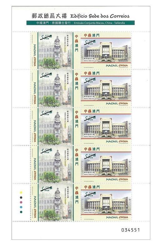 此套邮票中的泰国邮政大楼邮票由PisitPrasitthanadoon先生绘画,其别具一格的设计代表着泰国邮政与澳门邮政的和谐共融。现在的邮政大楼被受全国称许为有着极大价值的珍贵国家遗产,将会持续为泰国人民提供卓越而优质的服务。