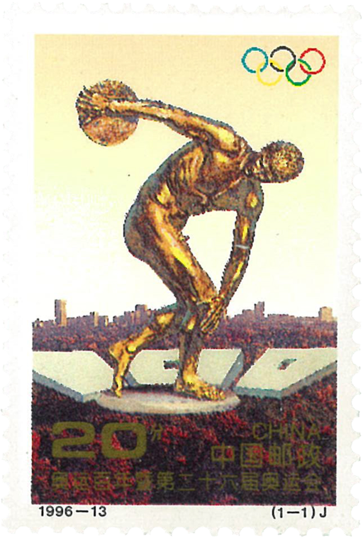 自1896年在希腊举办的第一届奥运会至今已有一百年历史。本套邮票以古希腊运动员掷铁饼雕像为主图,这尊雕像显示了古希腊运动员以健壮的体态和优美的动作姿势在奥运会上比赛的场面。