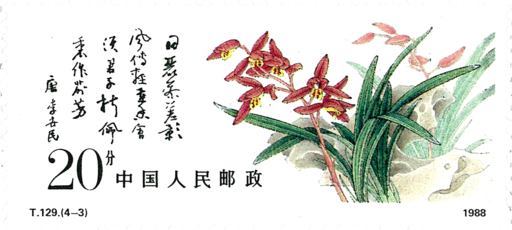 1988年12月25日,为再现中国这一传统名花,普及植物科学知识,美化人们生活,中华人民共和国邮电部发行《中国兰花》邮票一套4枚。