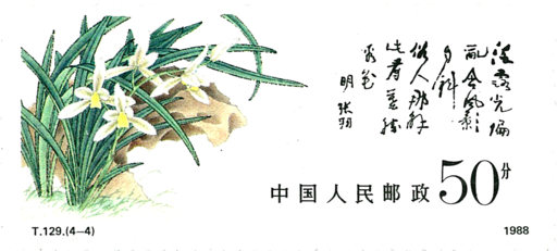 1988年12月25日,为再现中国这一传统名花,普及植物科学知识,美化人们生活,中华人民共和国邮电部发行《中国兰花》邮票一套4枚。
