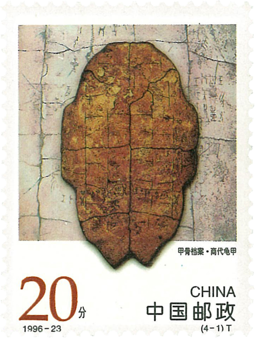 档案是社会实践活动中直接形成的具有使用价值的历史记录材料,我国建立档案记载的历史,可以追溯到公元前十四世纪至十一世纪的殷商时期。商代的史官负责档案管理,文字被刻在甲骨上;明代嘉靖年间建造的皇史宬,是明清两朝的皇家档案馆,用于记录古代档案的载体材料,有:甲骨、金文、石刻、竹简、木牍、缣帛等类。本套邮票的4幅画面,选取了我国古代具有代表性的文书档案:商代龟甲、汉代木牍、明代铁券、清代国书。