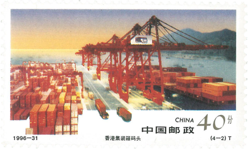 此套邮票为香港回归系列邮票的第二套,着重反映香港作为国际金融中心、证券交易中心和交通运输中心的地位05枚邮票画面分别为:中银大厦、集装箱码头、启德机场、联合交易所。.