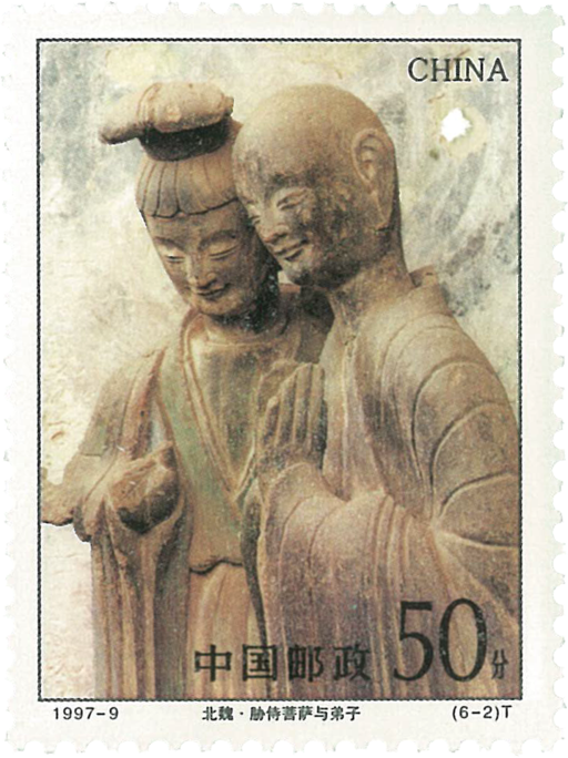 麦积山石窟位于陇海线天水车站东南30公里的西秦岭上,石窟群开凿在小陇山林海中一座奇伟的山崖上,因其形如“农家积麦”之状而得名。麦积山自古有“秦地林泉之冠”的美称,而石窟之高险壮观亦为世所罕见。麦积山石窟是中国著名的四大石窟之一,国家级第一批文物保护单位,麦积山石窟始凿于十六国后秦时期,距今已有1600年历史;石窟已历经了12个朝代,遭受过8次大地震和6次火灾,至今还存留洞窟194个,大小泥塑造像7000 多尊,石刻造像47尊,壁画1300余平方米。被中外学者誉为“东方雕塑陈列馆”,在丝绸之路和蜀道的交汇点上大放异彩。本套邮票图案选自麦积山石窟北魏、西魏、北周、宋代各时期的著名石刻和泥塑,它令人们领略到麦积山石窟的无穷魅力。
