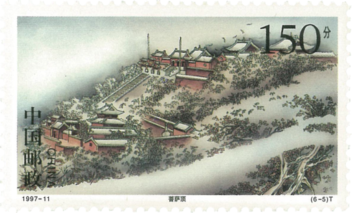五台山是我国四大佛教名山之一。位于山西五台县东北隅。环周250公里,由五座山峰环抱而成。五峰高耸,峰顶平坦宽阔,如垒土之台,故称五台。五峰之外称台外,其内称台内,五台各有其名,东台望海峰,西台卦月峰,南台锦绣峰,北台叶斗峰,中台翠岩峰。五台之中北台最高,海拔3058米,素称“华北屋脊”。山中气候寒冷,每年四月解冻,九月积雪,台顶坚冰累年,盛夏气候凉爽,故又名“清凉山”。山中寺庙林立,清流潺潺,青山绿水,风景秀丽。明《清凉山志》载,东汉永平年间五台山已有寺庙建筑,其后魏、齐、隋、唐及至清末,屡经修建,变化很大。现台内存寺庙39座,台外8座,建筑壮丽,雕刻精美,彩画塑像遍及各寺。五台山在我国佛教史上具有重要地位,隋、唐肘即已名播四方。这套邮票概括地表现出中华民族宗教文化艺术之一斑。