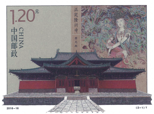 隆兴寺别名大佛寺,位于河北省石家庄市正定县城东门里街,原是东晋十六国时期后燕慕容熙的龙腾苑,公元586年(隋文帝开皇六年)在苑内改建寺院,时称龙藏寺,唐朝改为龙兴寺,清朝改为隆兴寺,是中国国内保存时代较早、规模较大而又保存完整的佛教寺院之一,也是研究宋代佛教寺院建筑布局的重要实例。隆兴寺现为国家4A级旅游景区、全国首批重点文物保护单位。隆兴寺是座千年古刹,也是一座珍藏了无数中华瑰宝的艺术宫殿。寺内现存大小殿宇十余座,汇集了大量的雕塑、壁画、碑碣等宝贵的艺术珍品。第一枚,摩尼殿和五彩倒坐观音。摩尼殿始建于北宋,其结构与宋代“营造法式”相近,目前是我国古建筑中仅存的孤例。梁思成先生称其为“艺臻极品”。五彩悬塑倒坐观音人格化的仪表,亲切和蔼的微笑。鲁迅先生把她视若佛教美学佳作,誉之为“东方美神”。第二枚,大悲阁和铜铸千手观音。大悲阁是隆兴寺的主体建筑,为五重檐三层楼阁。铜铸千手观音,共42臂,是我国现存古代最高的铜铸立式佛教造像。