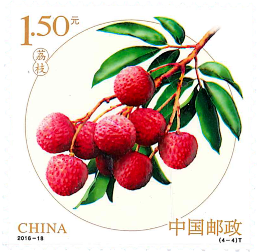 水果是指多汁且有甜味的植物果实,不但含有丰富的营养且能够帮助消化,为家庭或待客常用的果品。水果具有丰富的营养,在人类饮食中占据重要地位。我国幅员辽阔,水果品种繁多,形态各异,气味芬芳。杏的谐音是“幸”,有“三生有幸”“幸福幸运”的寓意,原产新疆,现各地都有栽培,我国有河北丰润和遵化及天津蓟县一带、山东历城、山西清徐等重要产地。葡萄的果语是思念,它代表将每一个思念的日子串联在一起;有多子多福的寓意。因葡萄结果实累累,也用来比喻丰收,象征为人事业及各方面都成功。原产亚洲西部,中国主要产区在新疆,其他还有河北怀来、山西清徐等重要产区。西瓜果肉最常见是红色的,有“大红大紫”的寓意。有祝您生活红、事业红、样样都红、一红到底的美好祝愿。原产非洲,中国各地栽培,品种甚多,外果皮、果肉及种子形式多样,我国有新疆昌吉、山东德州、江苏溧阳、北京大兴等西瓜重要产地。荔枝的“荔”字谐音有励志和理智的意味,荔枝的果语是承诺。荔枝有“大吉大利”的寓意,在传统文化中象征了健康 长寿。我国荔枝分布于西南部、南部和东南部,有广东、广西、福建、云南、四川等重要 产地。本套邮票采用了方形与内套圆形的样式,圆形水果与方形邮票中间形成了过度,让 平面空间更加立体,更有层次感也传递出四平八稳、圆圆满满的吉祥寓意。