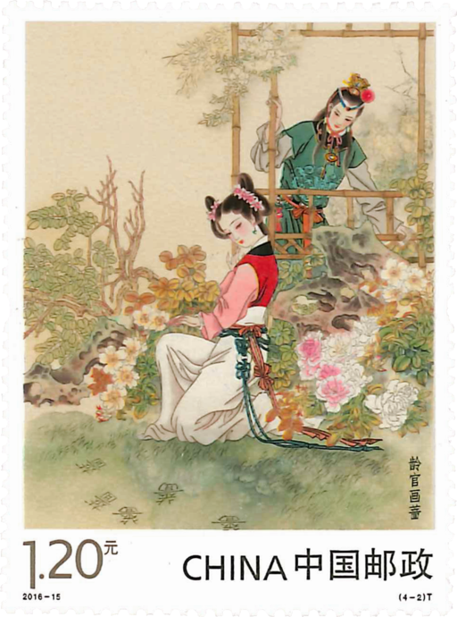 <红楼梦>原名<石头记>,章回体长篇小说。作品以贾、史、王、薛四大家族为背景,以贾宝玉、林黛玉的爱情悲剧为主要线索,描写了贾家荣、宁二府由盛而衰的过程。内容广泛、涉及各个学科,如诗词歌赋、琴棋书画、建筑亭阁、舟车行轿、服饰妆容、婚丧祭祀、饮食药膳、茶酒文化以及佛教、道教、儒家思想等传统文化,几乎无所不包。<红楼梦>语言优美生动,善于刻画人物,塑造了许多富有典型性格的艺术形象,具有卓越的艺术成就 。凤姐弄权取自原著第十四回《林如海捐馆扬州城贾宝玉路谒北静王》画面中王熙凤端坐;面部带愠,手指跪地上的小厮。旁边的丫鬟和妇人皆俯首听命。将王熙凤的精明能干表现得淋漓尽致。龄官画蔷取自第三十回《宝钗借扇机带双敲龄官划蔷痴及局外》。画面中一位少女蹲在蔷薇花架旁,手持金簪,地上画了很多“蔷”字,宝玉躲在花架后,偷偷看着龄官。睛雯撕扇取自第三十一回《撕扇子作千金一笑因麒麟伏白首双星》。画面中睛雯脸带俏皮微笑,手持一把被撕碎的扇子,宝玉在旁边拍手叫好。刻画了睛雯天真幼稚,张扬率性的性格特征。宝玉受笞取自第三十三回《手足耽耽小动唇舌不肖种种大承笞挞》。画面中贾政跌坐在一旁,王夫人扶着宝玉,宝玉躺在地上,旁边的袭人、李纨、三春姐妹等人陪在身旁落泪。贾母手执拐杖,满脸关切和心疼。小型张归省庆元宵取自第十八回《大观园试才题对额荣国府归省庆元宵》。画面表现元春归来省亲庆元宵时,贾府的华贵和气派。左边为宫里服侍的宫女,贾母陪在衣着雍容华贵的元春旁边,母亲王夫人一边拭泪 一边陪着女儿。右边站着邢夫人、王熙凤、三春姐妹等人。