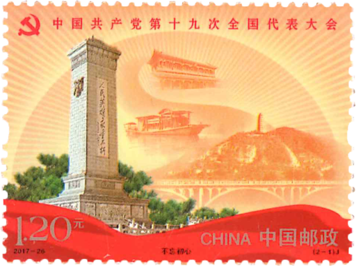中国共产党第十九次全国代表大会于2017年10月18日在北京召开。党的十九大,是在全面建成小康社会决胜阶段、中国特色社会主义发展关键时期召开的一次十分重要的大会,承担着谋划决胜全面建成小康社会,深入推进社会主义现代化建设的重大任务,事关党和国家事业继往开来,事关中国特色社会主义前途命运,事关最广大人民根本利益。不忘初心图案以人民英雄纪念碑为主体,周围用松柏加以烘托,以表达“不忘初心,缅怀革命先烈’’的寓意。