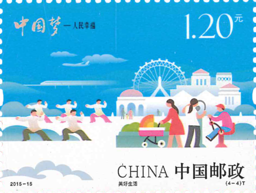 中国邮政于2013年开始发行《中国梦》系列邮票,分三组展现了国家富强、民族振兴、人民幸福。本组邮票的发行,是中国梦邮票系列的收官之作。