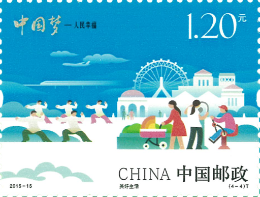 中国邮政于2013年开始发行《中国梦》系列邮票,分三组展现了国家富强、民族振兴、人民幸福。本组邮票的发行,是中国梦邮票系列的收官之作。