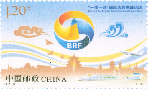 “一带一路”国际合作高峰论坛,于2017年5月14日至15日在中国北京举行,论坛主要活动包括开幕式、领导人圆桌峰会高级别会议三部分。中国国家主席习近平出席高峰论坛开幕式,发表了题为《携手推进“一带一路”建设》的主旨演讲,并主持了领导人圆桌峰会。峰会论坛有29个国家的元首和政府首脑,联合国秘书长、红十字国际委员会主席等重要国际组织负责人以及130多个国家和70多个国际组织的约1500名各界贵宾出席。高峰论坛是“一带一路”提出了3年多来最高规格的论坛活动,是2017年中国重要的主场外交活动,对推动国际和地区合作具有重要意义。“一带一路”国际合作高峰论坛的目的是全面总结“一带一路”建设的积极进展,展现重要早期收获成果,进一步凝聚合作共识,巩固良好的合作态势;共商下一阶段重要合作举措,进一步推动各方加强发展战略对接,深化伙伴关系,实现联动发展;在推进中国经济社会发展和结构调整的同时,推动国际合作,实现合作共赢。为纪念此次高峰论坛,中国邮政发行纪念邮票一套1枚。邮票画面中水纹元素代表了财富和海上丝路,祥云代表了陆上丝绸之路,体现了水利万物和包容、圆融的思想,表达了“加强国际合作,共建一带一路,实现共赢发展”的会议主题。其他元素反映了中国科技发展的成就,表现了联通中外的桥梁和纽带,阐述了此次论坛的“五通”主线,体现了中国与“一带一路”沿线国家一道携手共建、实现和平,发展与繁荣的共同愿景。