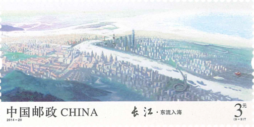 《长江》邮票以袁运甫先生国画长卷《长江万里图》为蓝本,以九图连票形式相衔展现长江万里奔腾的雄姿和气概。青藏高原各拉丹东雪山深处,雪水滴出了第一缕波涛。云南丽江石鼓镇近旁,江流逆转,惊天动地,亮出“长江第一湾”的雄浑。大江同环,毕竟东去。长江和嘉陵江相拥环抱山城重庆——这座在抗战中浴火重生,重为战略要地的中国西部唯一直辖市。进瞿塘峡口,迈出三峡第一步,巫峡十二峰接踵而来,一展神女峰仙姿。两陵峡险滩密布、悬崖飞瀑。