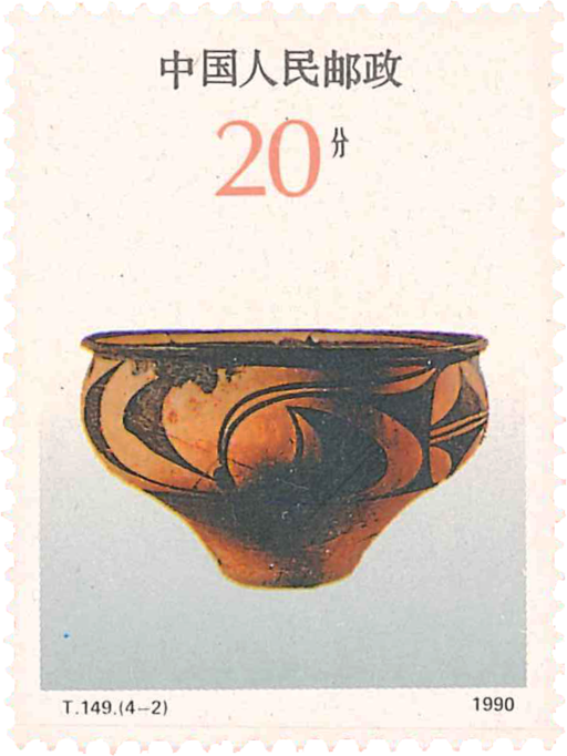 彩陶是指带有彩色文饰的陶器,其基本特点是陶质细腻,陶坯磨光着彩,在摄氏一千度左右的高温窑里烧成。纹饰以黑彩为主,兼用红彩或白彩,本套邮票所选用的四个类型是最具典型特征的彩陶。