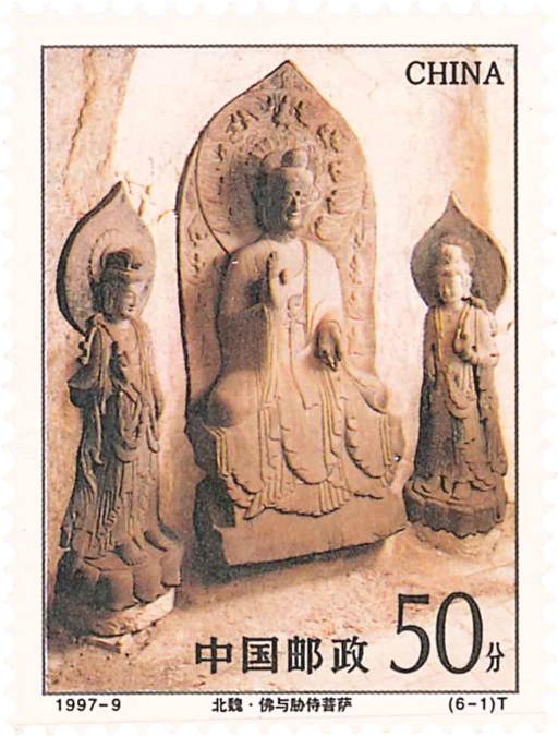 麦积山石窟位于陇海线天水车站东南30公里的西秦岭上,石窟群开凿在小陇山林海中一座奇伟的山崖上,因其形如“农家积麦”之状而得名。麦积山自古有“秦地林泉之冠”的美称,而石窟之高险壮观亦为世所罕见。麦积山石窟是中国著名的四大石窟之一,国家级第一批文物保护单位,麦积山石窟始凿于十六国后秦时期,距今已有1600年历史;石窟已历经了12个朝代,遭受过8次大地震和6次火灾,至今还存留洞窟194个,大小泥塑造像7000 多尊,石刻造像47尊,壁画1300余平方米。被中外学者誉为“东方雕塑陈列馆”,在丝绸之路和蜀道的交汇点上大放异彩。本套邮票图案选自麦积山石窟北魏、西魏、北周、宋代各时期的著名石刻和泥塑,它令人们领略到麦积山石窟的无穷魅力。