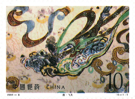 敦煌壁画是存于我国著名的三大石窟群之一的敦煌石窟内,现保存北魏、西魏、北周、隋唐、五代、宋、西夏、元各代壁画4500多平方米。敦煌壁画第五组的票面均采用唐代壁画。而唐代壁画最为丰富,色彩艳丽,人物造型往往以当时的高官贵嫔为范,端庄华贵,男女形貌都甚富美。敦煌壁画的题材除表现佛经名类人物,佛经经变故事,净土变相及菩萨像外,还有众多供养人画像,其内容较过去更丰富,色彩也比较绚丽,表现境界亦更扩大,再现了中国中世纪社会生活的场景,这些辉煌灿烂的作品,可作为唐代佛教美术的代表,并启发了对敦煌学的研究工作。