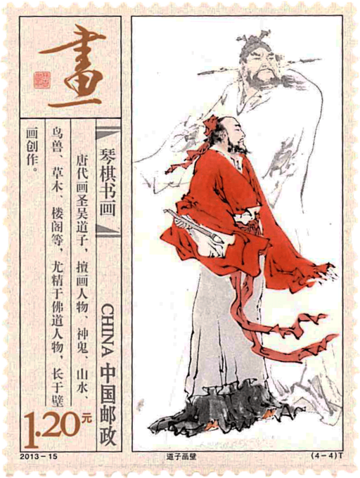 唐代画圣吴道子,擅画人物、神鬼、山水、鸟兽、草木、楼阁等,尤精于佛道人物,长于壁画创作。