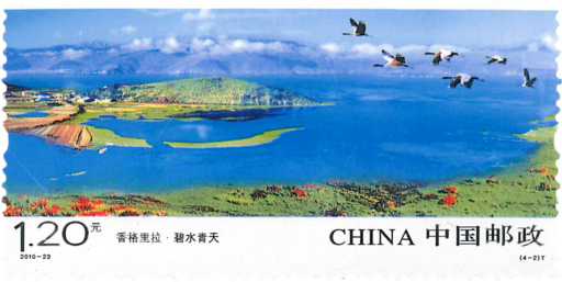 香格里拉位于我国云南省西北部,是迪庆藏族自治州州府驻地。“香格里拉”一词,藏语意为“心中的日月”,是1933年英国作家詹姆斯·希尔顿在小说《消失的地平线》中描绘的中国藏区一个和平、宁静之地。邮票“霞蔚古寺”表现的是噶丹·松赞林寺的景色。噶丹·松赞林寺位于云南省香格里拉县城北佛屏山麓,始建于公元1679年,占地500余亩,是云南藏区规模最 大的藏传佛教寺院,有“小布达拉宫”之誉。邮票“碧水青天”中的景致取自纳帕海自然保护区。纳帕海自然保护区位于香格里拉县西北,海拔3266米。纳帕海为季节性湖泊,枯水时部分为沼泽草甸,是重要的牧场,也是珍稀动物的重要栖息地。邮票“平湖叠翠”表现了普达措国家公园中的美景。普达措国家公园位于香格里拉县城东北,总面积近2000平方千米,是我国最大的国家公园。邮票“雪域古城”展现了独克宗古城的风貌。独克宗古城位于香格里拉县城东南部,历史悠久,在唐宋时期就是滇、川、藏茶马互市的重镇,是藏区保存最完好的古城之一。邮票小型张“日照金山”展示的是梅里雪山的壮美景色。梅里雪山位于迪庆藏族自治州德钦县西北横断山脉中段,是怒江与澜沧江的分水岭。梅里雪山海拔在6000米以上的雪峰有10余座,俗称“太子十三峰”。主峰卡瓦格博峰是云南第一高峰,被藏民称为“雪山之神”。