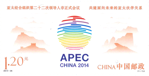 亚太经合组织(APEC)第22次领导人非正式会议于2014年11月10日至11日在北京市怀柔区雁栖湖举行,主题是“共建面向未来的亚太伙伴关系”。2014年APEC会标图案,用21条彩色线条,描绘出一个多彩的地球轮廓,其中包含了中国北京天坛的造型。会标象征着世界的多元美好和开放包容,APEC21个经济体的伙伴关系和融合发展,表达了中国与APEC各经济体紧密合作、共谋发展的美好愿景。