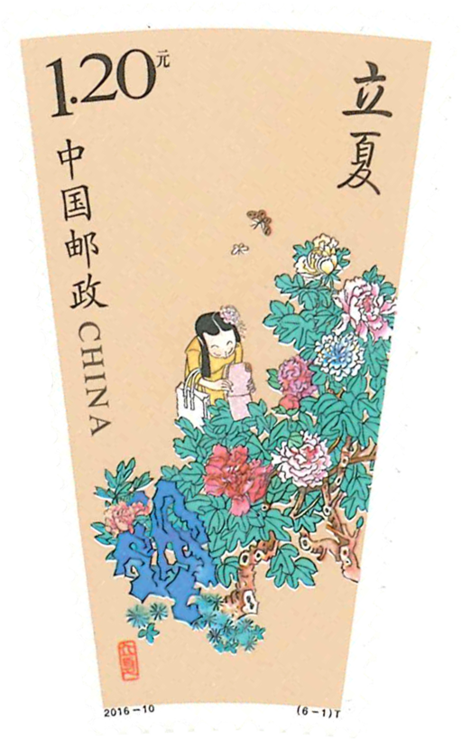 中国是一个历史悠久的文明古国,人民从亲身实践中认识总结了丰富的生产和生活经验,二十四节气堪称人民智慧的结晶。二十四节气起源于我国黄河流域,到秦汉时期,二十四节气已经完全确立。节气习俗和节日活动共同组成了中华民族的岁时节令文化,在几千年的历史长河中不断完善和发展,历代传承。农历二十四节气既包括相关的谚语、歌谣、传说等,又有传统生产工具、生活器具、工艺品、书画等艺术作品,还包括与节令关系密切的节日文化、生产仪式和民间风俗。二十四节气是中国古代农业文明的具体表现,具有很高的农业历史文化的研究价值,反映了社会各阶层的生活风貌、礼仪交往、文化思想、民俗娱乐等。节气既是人们对天文、气象、物候的科学认识总结,也是古代历法的创造之一。节气将一年内太阳运行的位置变化及由此引起的地面气候演变秩序,划分为24个阶段,每段约隔半个月时间,然后分配在12个月里,以反映四季、气温、物候等情况。本套邮票发行立夏、小满、芒种、夏至、小暑、大暑六个节气。