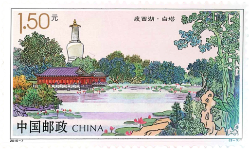 《瘦西湖》邮票采用了新中国第一代邮票设计家孙传哲生前的创作作品,以工笔勾线的画法,展现了五亭桥、白塔、二十四桥等标志性景点,画面精巧别致,意境广阔。