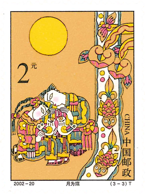 《中秋节》邮票是继《春节》、《端午节》之后发行的第3套中国民间传统节日邮票。中秋节流行于汉族和壮、布衣、侗、朝鲜等少数民族地区。中秋原意为"秋季之中",又称"仲秋"。中国农历以七、八、九3个月为秋季,中间的八月十五日就被称为"中秋"。+中国古代很早就有祭月的风俗,祈求月神保佑幸福长寿、家庭团圆。到宋代以赏月为主要内容的中秋节已由宫廷发展到民间,成为民俗节日,象征团圆的月饼也渐渐成为中秋节广受欢迎的节令食品。这套《中秋节》邮票以表现传统的民俗活动为主要内容,3枚邮票分别表现"团圆"、"赏月"、"月为媒”的主题,采用传统民间木版年画的艺术表现形式,构图简洁、用色单纯,以暖黄色调为主,烘托中秋节月光融融、欢乐吉祥的气氛。