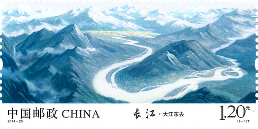 《长江》邮票以袁运甫先生国画长卷《长江万里图》为蓝本,以九图连票形式相衔展现长江万里奔腾的雄姿和气概。青藏高原各拉丹东雪山深处,雪水滴出了第一缕波涛。云南丽江石鼓镇近旁,江流逆转,惊天动地,亮出“长江第一湾”的雄浑。大江同环,毕竟东去。长江和嘉陵江相拥环抱山城重庆——这座在抗战中浴火重生,重为战略要地的中国西部唯一直辖市。进瞿塘峡口,迈出三峡第一步,巫峡十二峰接踵而来,一展神女峰仙姿。两陵峡险滩密布、悬崖飞瀑。