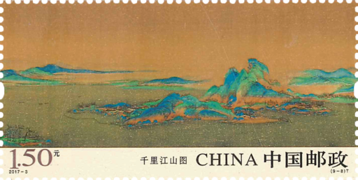 《千里江山图》卷,北宋王希孟作,绢本,设色,纵51.5厘米,横1191.5厘米,故宫博物院藏。画中描写岗峦起伏的群山和烟波浩渺的江湖。山石皴法以披麻皴为主,设色继承了唐以来的青绿画法。全幅构图景象雄浑壮阔,气势磅礴,陈布有致,衬映精当,是一幅既写实又富理想的山水画作品,更是中国传统山水画中的巨制。