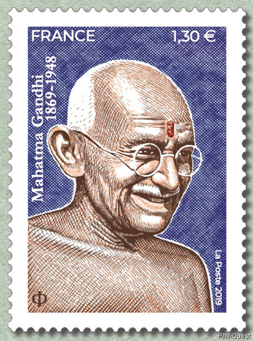 法国10月3日发行圣雄甘地1869-2019邮票
