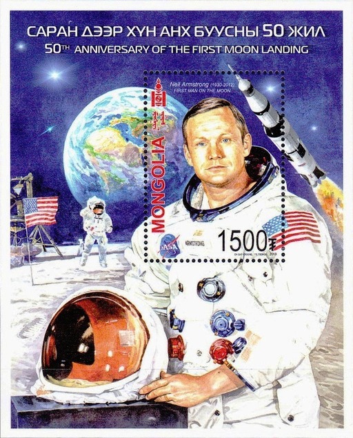 名称:蒙古8月30日发行人类首次登月50周年小型张