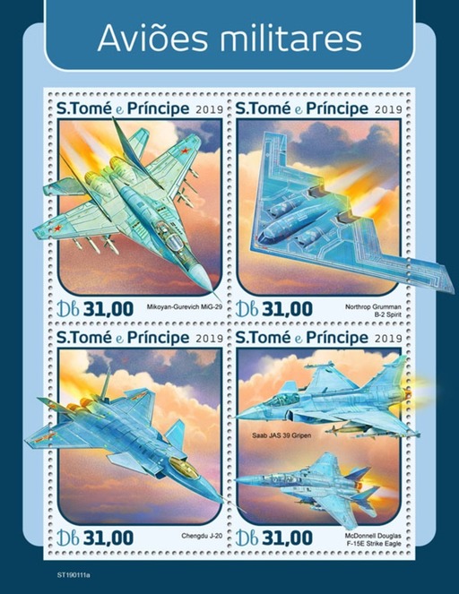 圣多美2019年发行的军用飞机小全张
