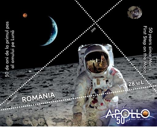 罗马尼亚7月11日发行人类月球第一步50周年邮票和小型张