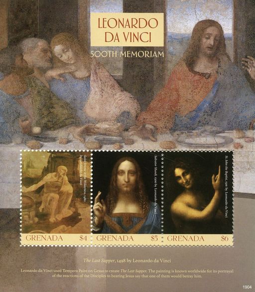 格林纳达2019年发行莱昂纳多·达·芬奇逝世500周年小全张