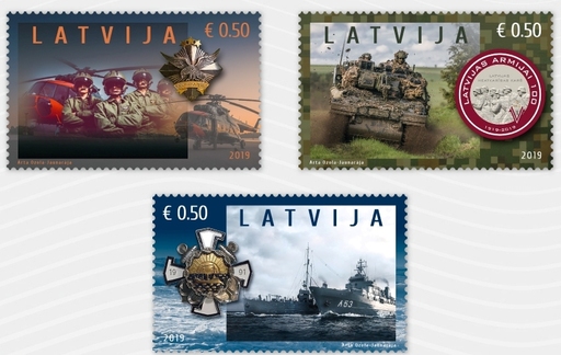 拉脱维亚7月10日发行拉脱维亚军队成立100周年邮票