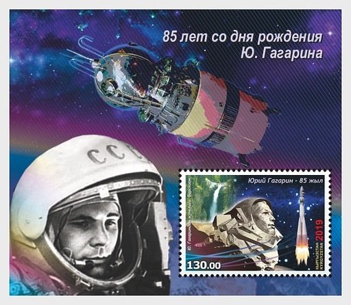 名称:吉尔吉斯斯坦6月25日发行尤里·阿列克谢耶维奇·加加林诞辰85周年小型张(KP)