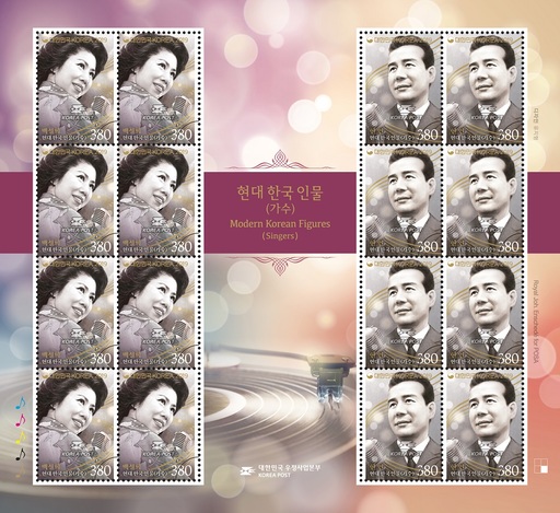 韩国6月21日发行现代韩国人物(歌手)邮票