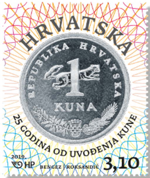 克罗地亚5月30日发行克罗地亚货币库纳25周年邮票