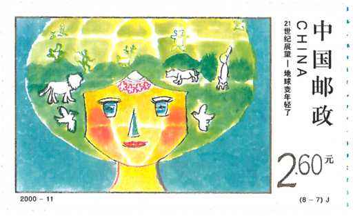 这是中国邮政发行的《世纪交替千年更始》系列的第二套邮票。“21世纪展望”是8幅儿童画作品,以儿童的视角去看未来世界,想象新世纪科技的发明创造和人类的衣食住行,并表达了我国儿童对新世纪的美好祝愿。这8幅邮票图案是从全国范围内开展的“展望新世纪邮票”儿童设计竞赛活动中的200幅儿童画中评选出来的。图画中透出的:儿童稚拙的笔触、奇特的构思、大胆的设色,无不体现了中国邮票设计艺术后继有人的光明前景。世界上有30多个国家和地区开展了这种活动。