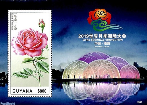 圭亚那4月28日发行2019世界月季洲际大会小型张